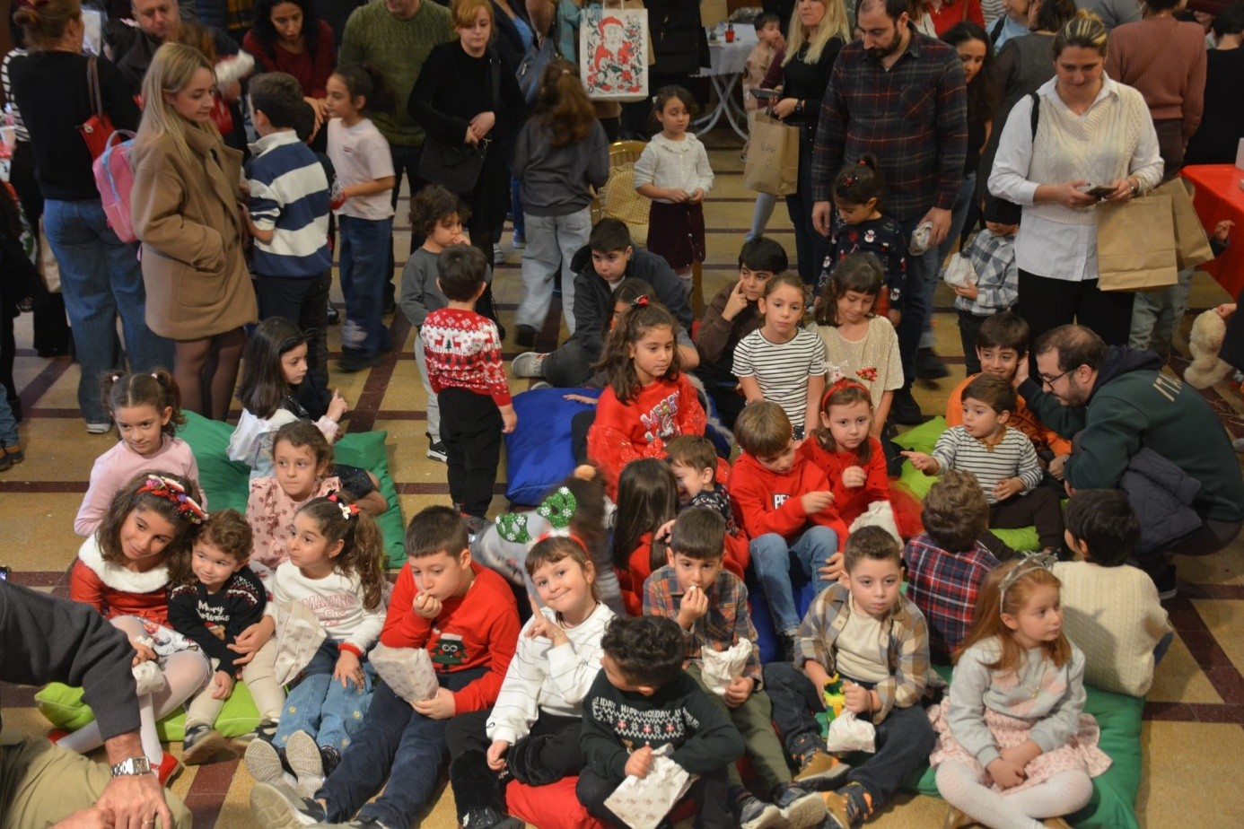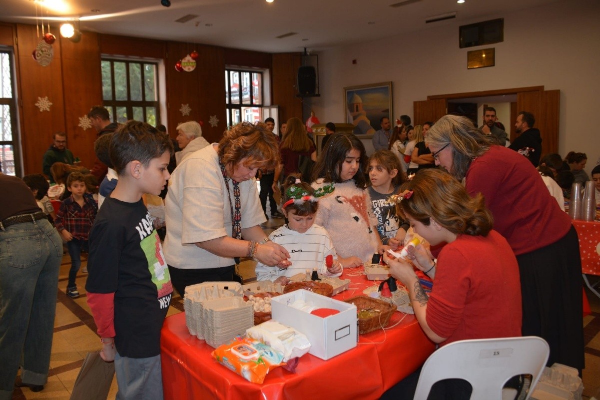 Η αίθουσα γέμισε από πάρα πολλές χαρούμενες παιδικές φωνές και όλοι μαζί μικροί και μεγάλοι, δημιούργησαν γιορτινές κατασκευές, στα καλλιτεχνικά εργαστήρια. Μετά, τα παιδιά δέχτηκαν τα χριστουγεννιάτικα δώρα από τον Άγιο Βασίλη και ο Σεβ. Πατριαρχικός Επόπτης μας, συνεχάρη, για την διοργάνωση και την επιτυχία της εκδηλώσεως, την Ευγεν. κ. Δέσποινα Καμβισέλη-Χανίδου, Πρόεδρο του ΕΡ.Θ.Ο, και τα υπόλοιπα μέλη του Διοικητικού Συμβουλίου, καθώς επίσης και τον Εντιμολ. κ. Κωνσταντίνο Σανταλτζίδη, Άρχοντα Έξαρχο της Αγίας του Χριστού Μ. Εκκλησίας - Πρόεδρο της Κοινότητός μας.
