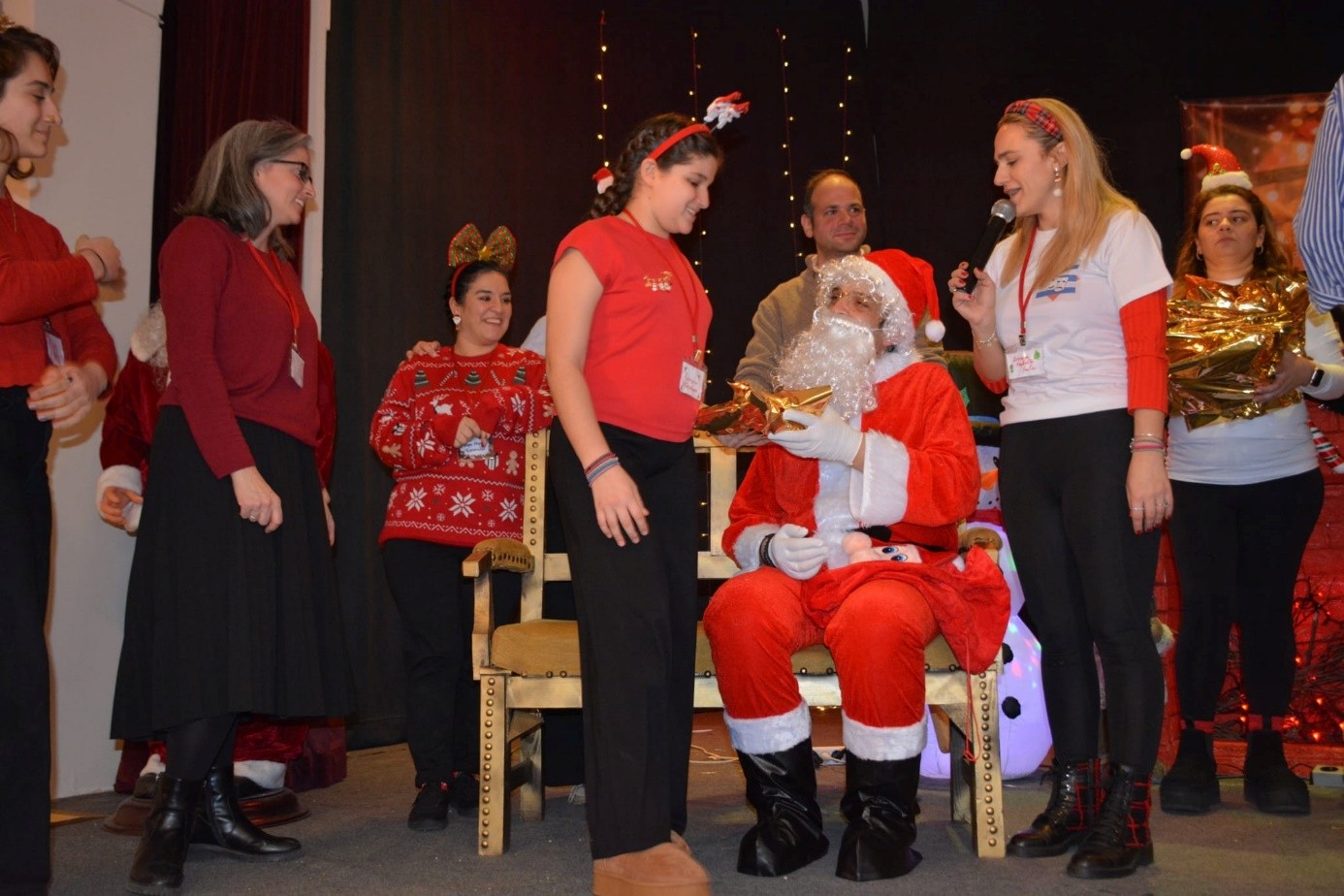 Την Χριστουγεννιάτικη εκδήλωση τίμησαν με την παρουσία τους, μεταξύ άλλων, ο Ευλαβ. Διάκονος της Περιφερείας μας κ. Παντελεήμων Κιοσέ, ο Εντιμ. κ. Χρήστος Σταμπουλόπουλος, Εμπορικός Ακόλουθος του Γενικού Προξενείου της Ελλάδος στην Πόλη, και η Ελλογιμ. κ. Δήμητρα Βουρδόγλου, Συντονίστρια Εκπαιδεύσεως.