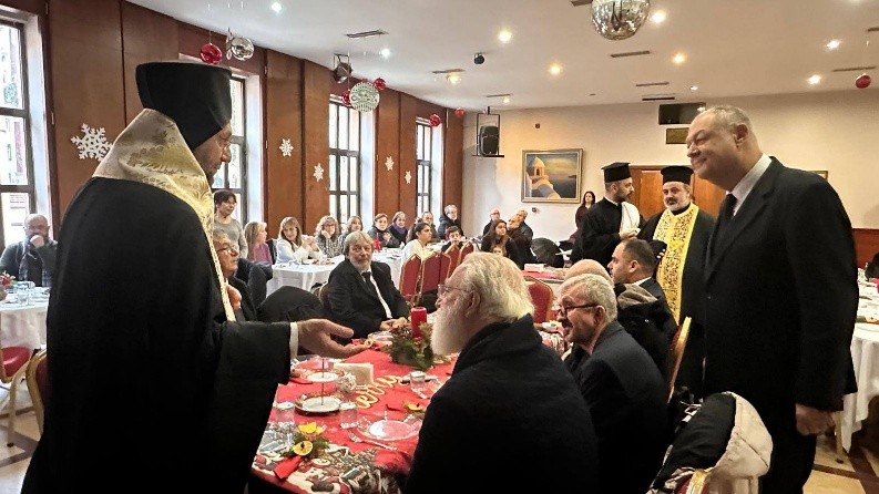 Την Κυριακή μετά τα Φώτα, 11 Ιανουαρίου 2026, τελέσθηκε Αρχιερατική Θεία Λειτουργία στον Ιερό Ναό Αγίων Δώδεκα Αποστόλων Φερίκιοϊ, ιερουργούντος του Σεβ. Μητροπολίτου Καλλιουπόλεως καί Μαδύτου κ. Στεφάνου, Πατριαρχικού Επόπτου της Περιφερείας μας, ο οποίος κήρυξε τον θείο Λόγο. Συλλειτούργησε ο Πανοσιολ. Αρχιμανδρίτης π. Λάζαρος Θεοδοσίου, Ιερατικώς Προϊστάμενος τῆς Κοινότητός μας, και διακόνησε ο Ευλαβ. Διάκονος της Περιφερείας Ταταούλων π. Παντελεήμων Κιοσέ. Έψαλαν εμμελώς, οι Μουσικολ. κ. κ. Σπυρίδων Μέριανος και Συμεών Σολταρίδης. Συμπροσευχήθηκαν ο Σεβ. Μητροπολίτης Αρκαλοχωρίου, Καστελλίου και Βιάννου κ. Ανδρέας, ομοτιμ. Καθηγητής της Θεολογικής Σχολής, του Αριστοτελείου Πανεπιστημίου Θεσσαλονίκης, ο Εντιμολ. κ. Κωνσταντίνος Σανταλτζίδης, Άρχων Έξαρχος της Αγίας του Χριστού Μ. Εκκλησίας, Πρόεδρος της εντίμου Εκκλησιαστικής Επιτροπής της Κοινότητος, επικεφαλής μελών αυτής, μέλη της Φιλοπτώχου Αδελφότητος Κυριών Φερίκιοϊ, καθώς και ικανός αριθμός πιστών από την Κοινότητά μας και από άλλα σημεία της Πόλεως. Ιδιαίτερη τιμή για την Κοινότητά μας, απετέλεσε και η παρουσία της ενορίτισσάς μας Ευγεν. δίδος Χρυσοβαλάντως Σταμπουλή, εκ του Γραφείου του Εμπορικού Ακολούθου του ενταύθα Γενικού Προξενείου της Ελλάδος. Μετά την Θ. Λειτουργία έγινε η τελετή κοπής της Αγιοβασιλόπιττας από τον Σεβ. Πατριαρχικό Επόπτης μας, στην υπέροχα στολισμένη Κοινοτική Αίθουσα, με κάθε μεγαλοπρέπεια, αφού πρώτα απηύθυνε τις δέουσες ευχές για την αρχή του Νέου Έτους, αναφερόμενος ιδιαιτέρως στην αξία της χριστιανικής διδασκαλίας σχετικά με την συγχώρηση που πρέπει να επιδεικνύουν οι Χριστιανοί προς κάθε άνθρωπο, αλλά και στην πάντοτε επίκαιρη σημασία της αξίας που αποκτά ο πλούτος όταν μοιράζεται. Εν συνεχεία ο Σεβ. Επόπτης μας, καλωσόρισε με θερμούς τιμητικούς χαιρετισμούς τον συμπαρευρισκόμενο Σεβ. Μητροπολίτη Αρκαλοχωρίου, Καστελλίου και Βιάννου κ. Ανδρέα. Ακολούθως, ο Δεσπότης μας, έκοψε την πίττα, αφού εψάλη πρώτα το Τροπάριο «Εις πάσαν την γην», ξεχωρίζοντας το πρώτο κομμάτι για τον Άγιο Βασίλειο, ενώ το δεύτερο για τον Παναγιώτατο Πατριάρχη του Γένους μας, του Οποίου τις ευχές και την ευλογία διαβίβασε στους πιστούς της Κοινότητός μας. Κατά την ώρα της κοπής συμφώνως προς την Πολίτικη παράδοση εψάλη το Μεγαλυνάριο του Αγίου Βασιλείου «Τον ουρανοφάντορα του Χριστού». Εφέτος η χρυσή λίρα έλαχε στην Ευγεν. κ. Ιουλία Κιοσέγλου- Βγενοπούλου. Την κάλυψη με πλούσιο φωτογραφικό υλικό φρόντισε ο συμπαραστάτης της Κοινότητός μας σε κάθε σημαντική εκδήλωση, Ελλογιμ. κ. Απόστολος Ντόβας, Θεολόγος. Δι’ αυτού του εορταστικού γεγονότος έκλεισε και ο εφετινός κύκλος του Αγίου Δωδεκαημέρου στους Αγίους Αποστόλους Φερίκιοϊ, αφού στο τέλος ανταλλάχτηκαν οι δέουσες ευχές μεταξύ των συμμετεχόντων στην κατάμεστη Αίθουσα εκδηλώσεων της Κοινότητός μας, για υγεία και μακροημέρευση παρά Θεού. ΕΚ ΤΗΣ ΚΟΙΝΟΤΗΤΟΣ