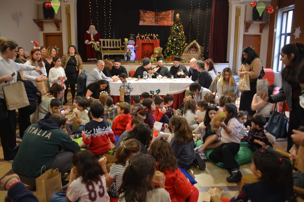 Η αίθουσα γέμισε από πάρα πολλές χαρούμενες παιδικές φωνές και όλοι μαζί μικροί και μεγάλοι, δημιούργησαν γιορτινές κατασκευές, στα καλλιτεχνικά εργαστήρια. Μετά, τα παιδιά δέχτηκαν τα χριστουγεννιάτικα δώρα από τον Άγιο Βασίλη και ο Σεβ. Πατριαρχικός Επόπτης μας, συνεχάρη, για την διοργάνωση και την επιτυχία της εκδηλώσεως, την Ευγεν. κ. Δέσποινα Καμβισέλη-Χανίδου, Πρόεδρο του ΕΡ.Θ.Ο, και τα υπόλοιπα μέλη του Διοικητικού Συμβουλίου, καθώς επίσης και τον Εντιμολ. κ. Κωνσταντίνο Σανταλτζίδη, Άρχοντα Έξαρχο της Αγίας του Χριστού Μ. Εκκλησίας - Πρόεδρο της Κοινότητός μας.